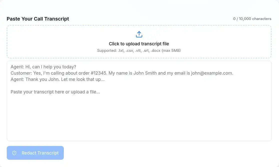 Start redacting transcripts today. Your customers' privacy depends on it. Your compliance depends on it. Your peace of mind depends on it.
